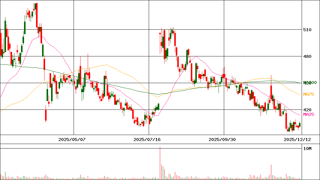| 移動平均線 | 414(-16.40bp) | 436.493(-24.99bp) | 449.79(-11.44bp) |