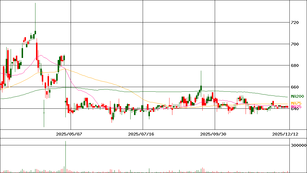 | 移動平均線 | 641.16(-0.62bp) | 644.267(-0.83bp) | 650.66(-1.46bp) |