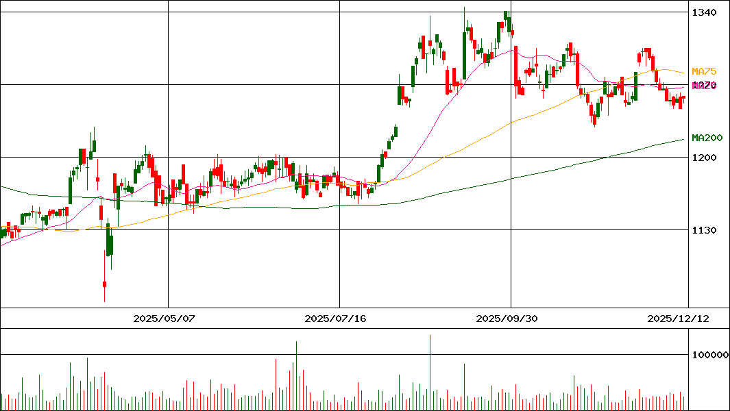 | 移動平均線 | 1268(+6.00bp) | 1280.77(-3.88bp) | 1217.69(+5.83bp) |