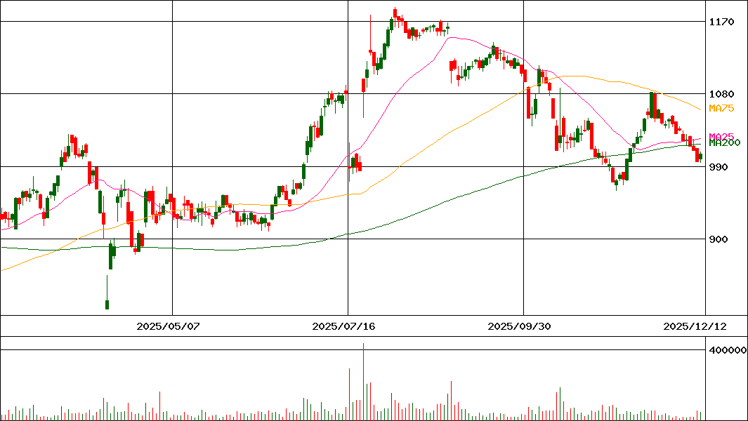 | 移動平均線 | 1024.6(+13.68bp) | 1060.45(-19.17bp) | 1017.64(+3.34bp) |