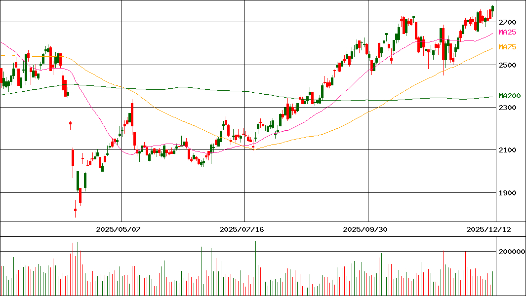 | 移動平均線 | 2647.96(+30.30bp) | 2576.63(+22.00bp) | 2348.8(+5.86bp) |