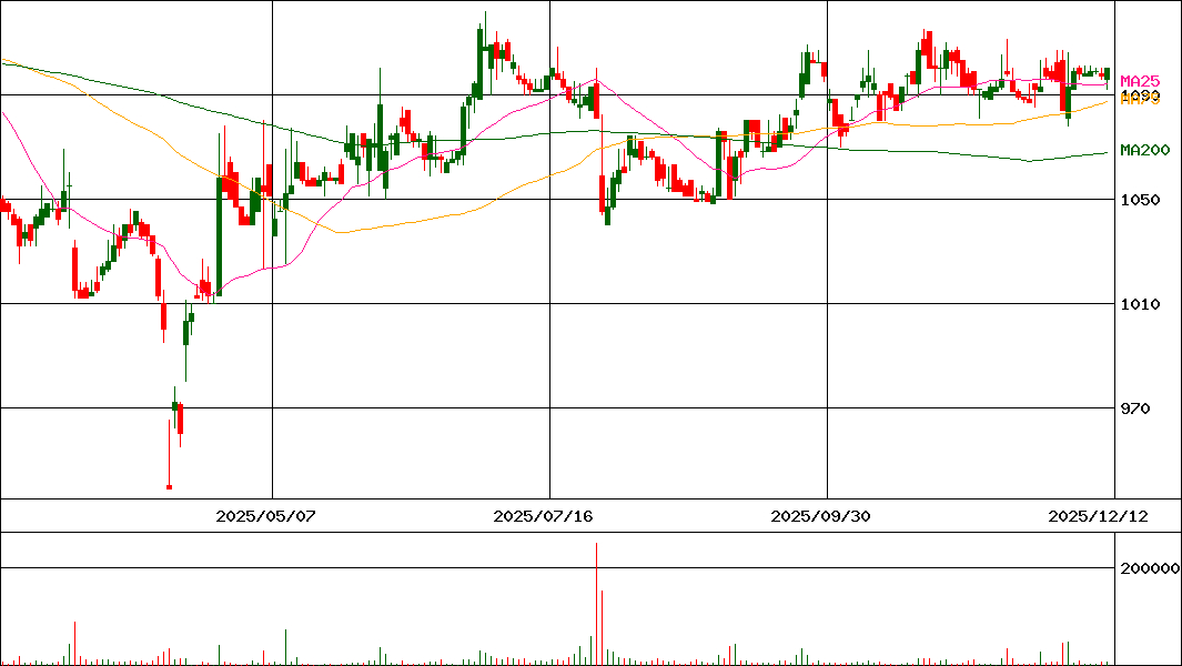 | 移動平均線 | 1094.4(+3.66bp) | 1087.89(+6.47bp) | 1067.99(+2.67bp) |