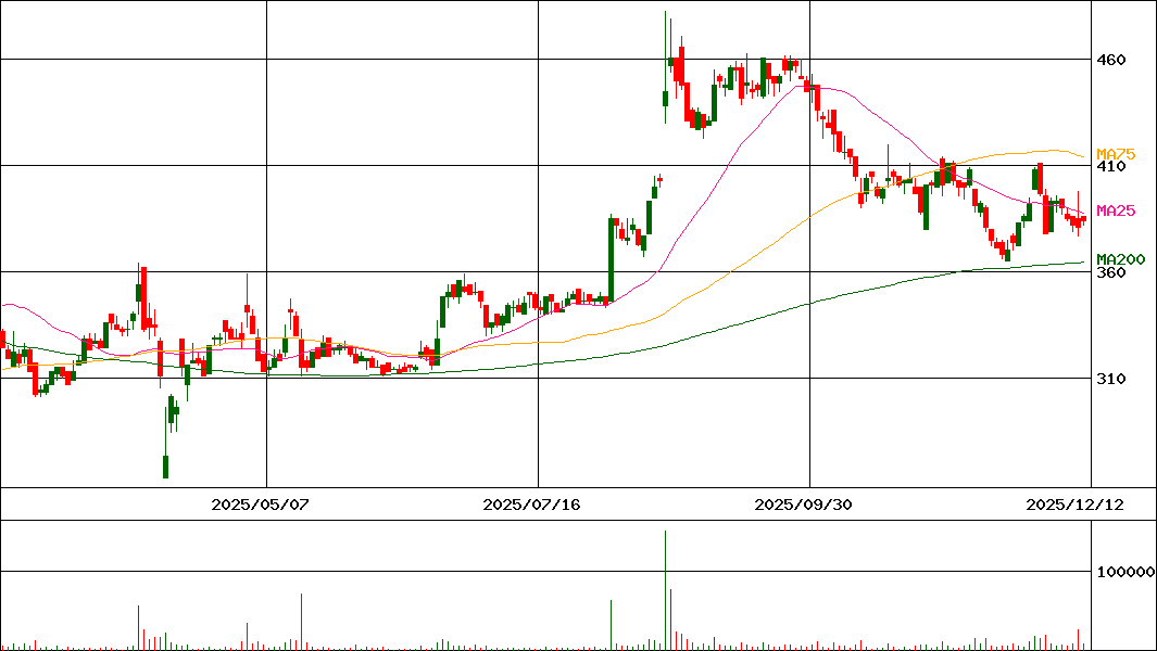 | 移動平均線 | 387.4(-27.80bp) | 413.933(-21.21bp) | 364.55(+7.00bp) |