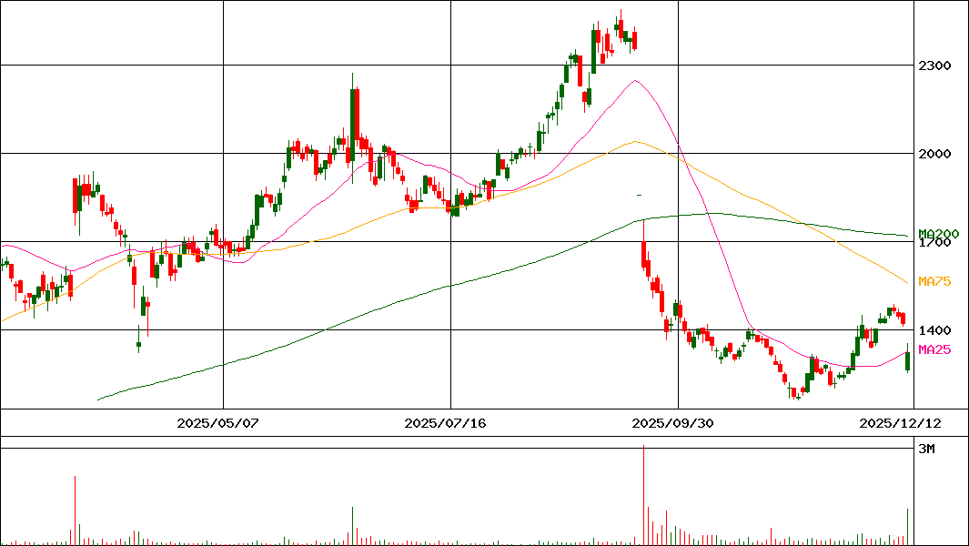 | 移動平均線 | 1325.84(+44.85bp) | 1556.57(-82.93bp) | 1719.99(-9.06bp) |