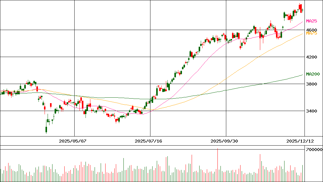 | 移動平均線 | 4718.2(+30.27bp) | 4539.93(+21.02bp) | 3933.54(+15.49bp) |