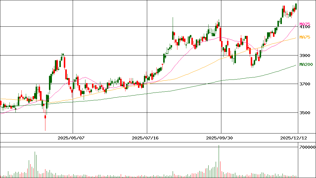 | 移動平均線 | 4112.8(+39.05bp) | 4022.07(+8.80bp) | 3830.4(+8.75bp) |