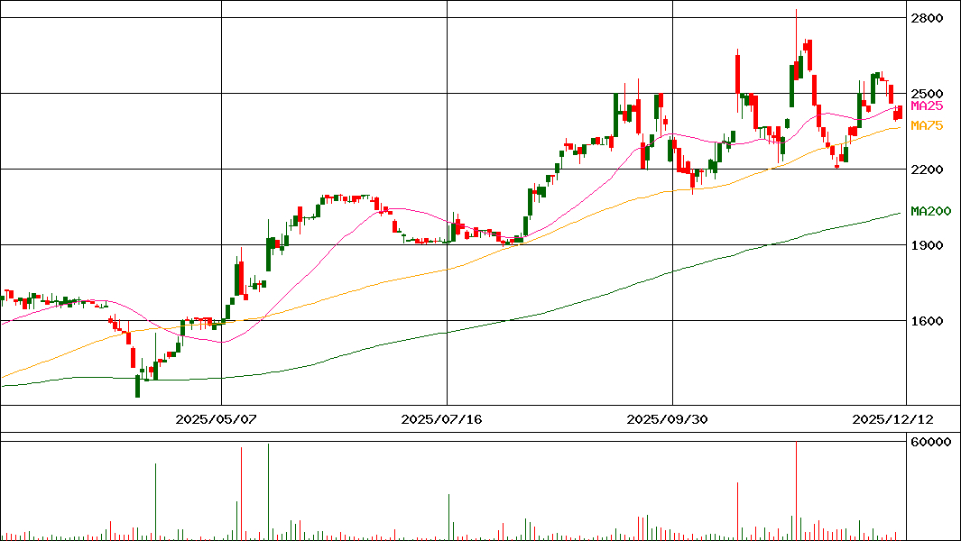 | 移動平均線 | 2441.68(+0.82bp) | 2363.91(+7.35bp) | 2023.99(+17.69bp) |