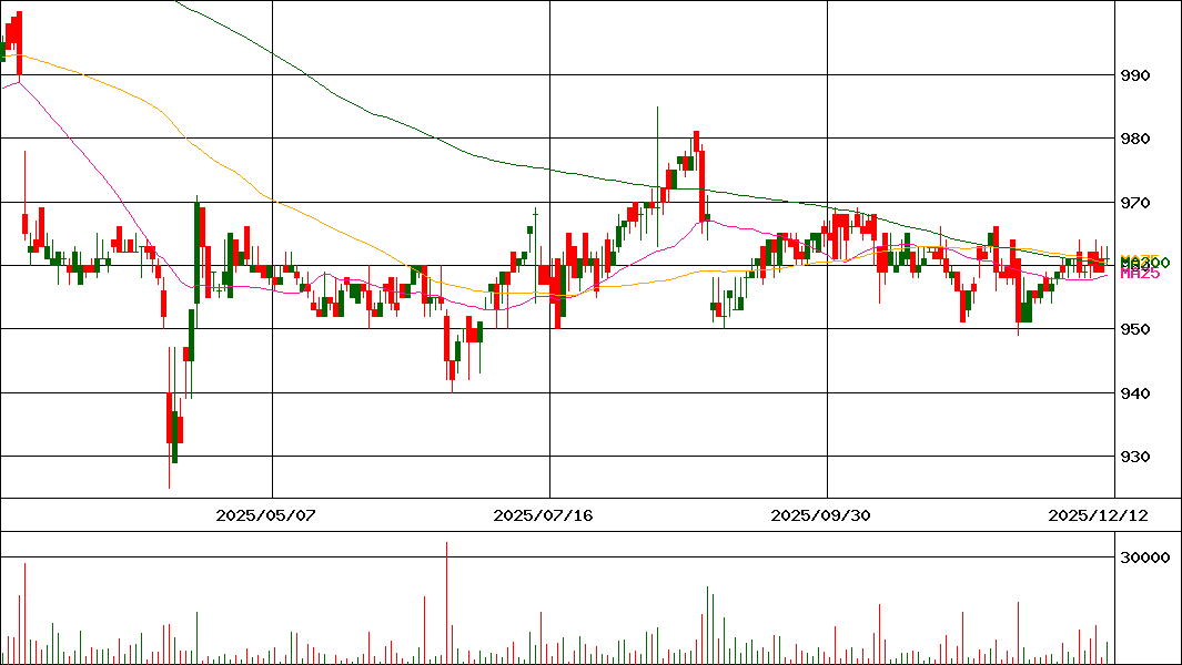 | 移動平均線 | 958.72(+3.76bp) | 960.12(-1.80bp) | 959.79(-1.56bp) |